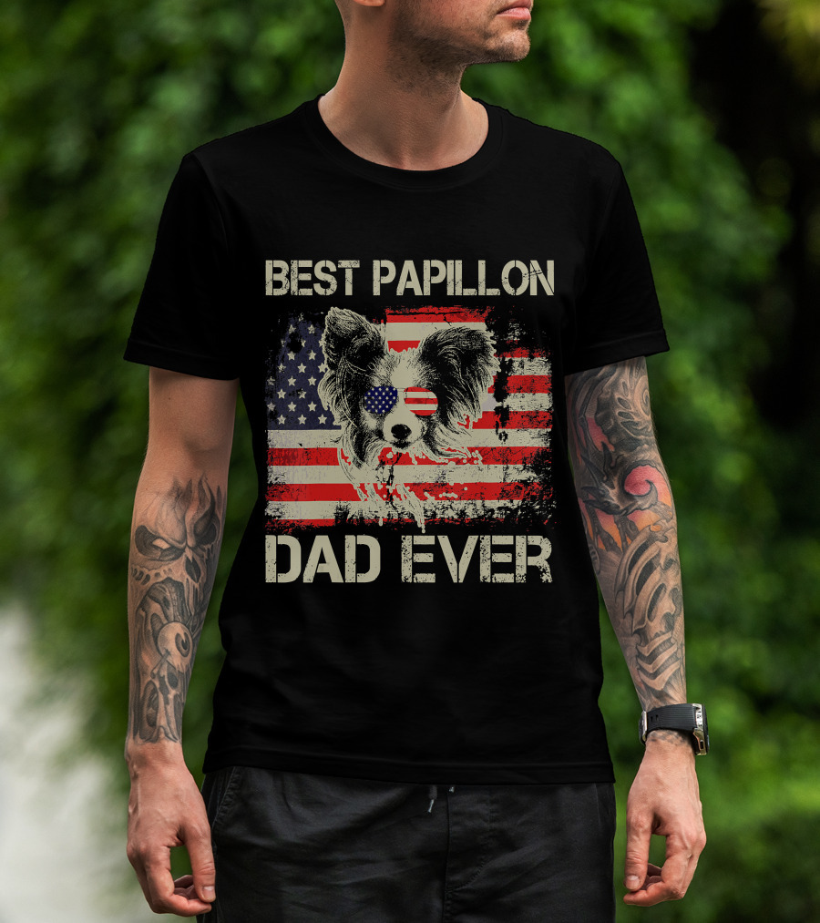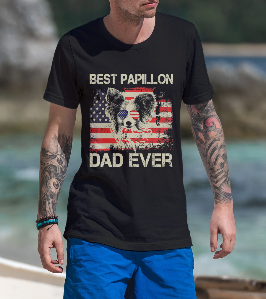 BEST PAPILLON DAD EVER American Flag Papillon T-Shirt