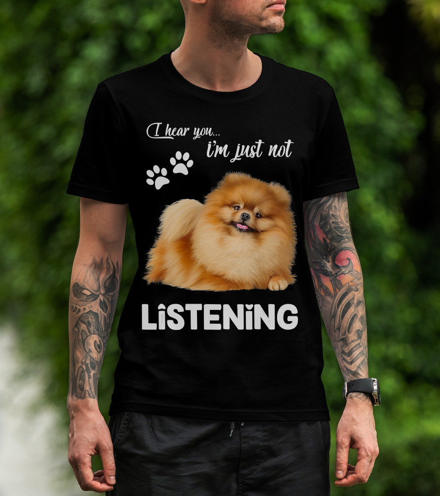 I Hear You I'm Just Not Listening Pomeranian And Paw Prints T-Shirt