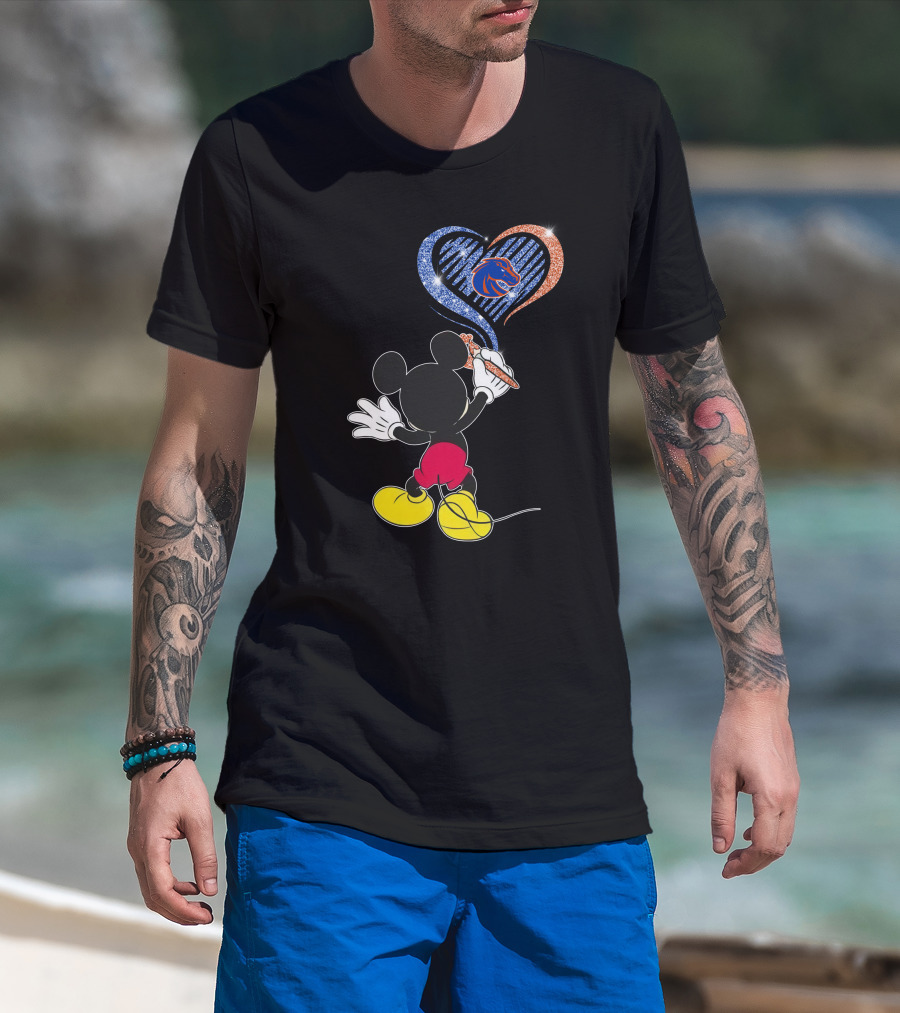 Mickey Painting Blue And Orange Heart Boise State Broncos T-Shirt