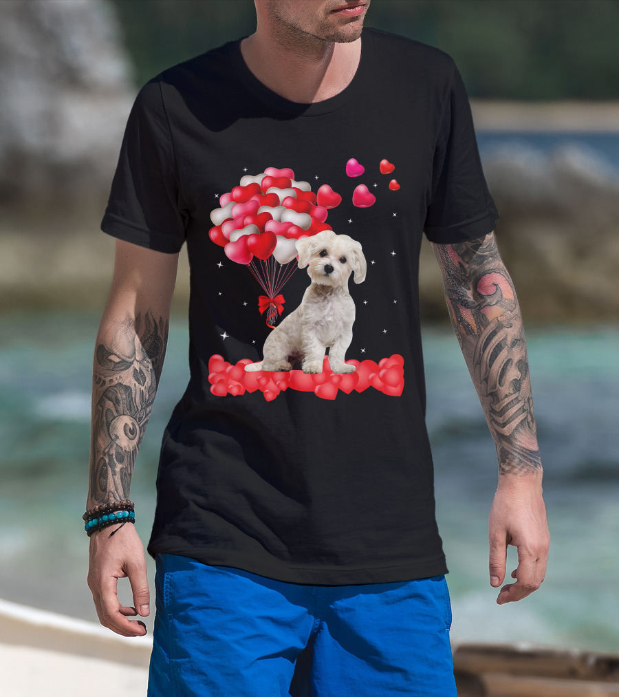 Heartfelt Maltese With Heart Balloons Valentine's Day T-Shirt
