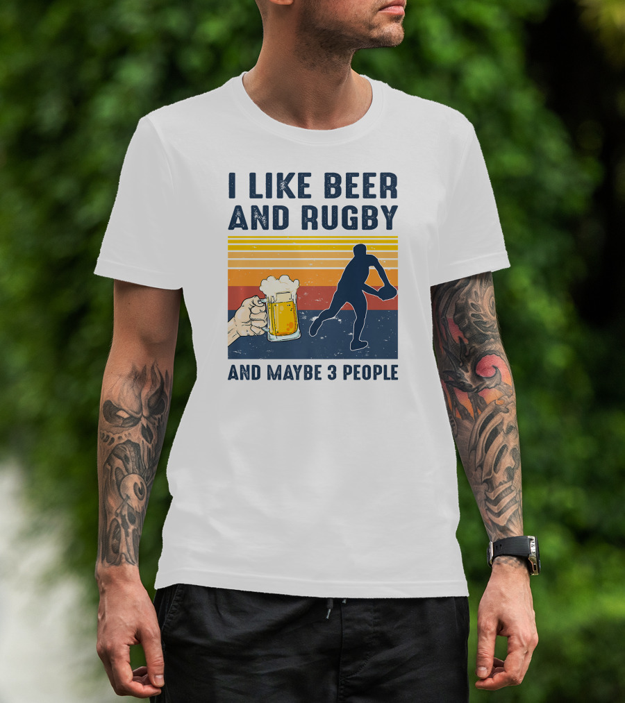 I Like Beer And Rugby And Maybe 3 People Retro T-Shirt