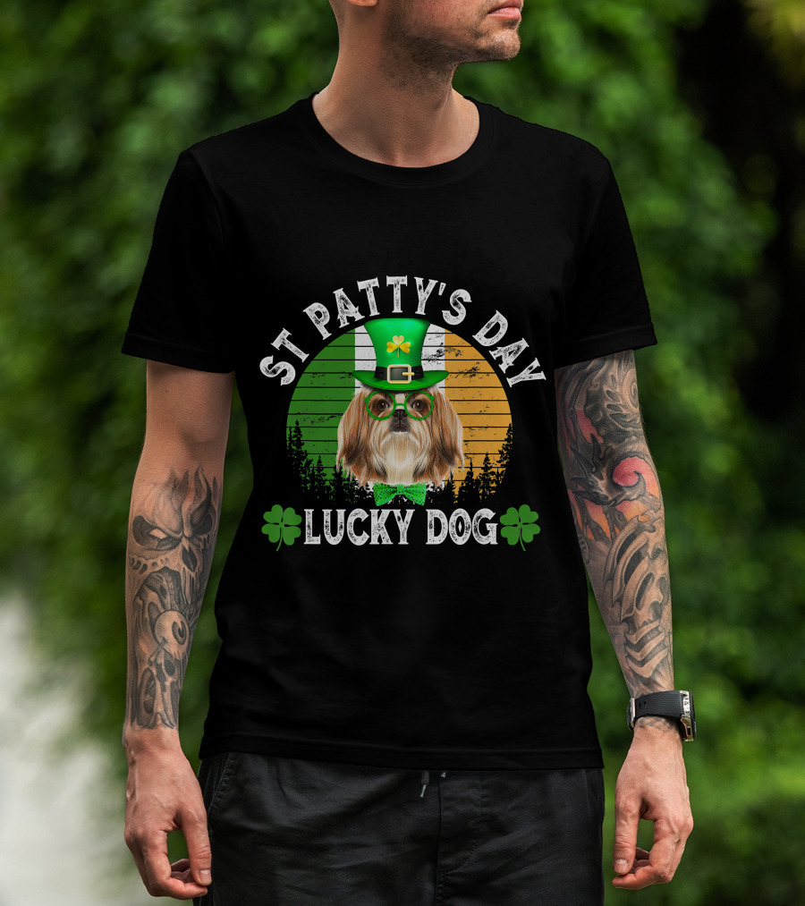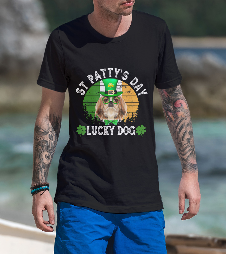 St Patty's Day Lucky Dog Shih Tzu Shamrock T-Shirt
