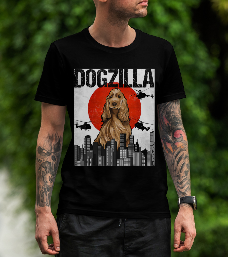 Dogzilla Vintage Japanese Cityscape With English Cocker Spaniel T-Shirt
