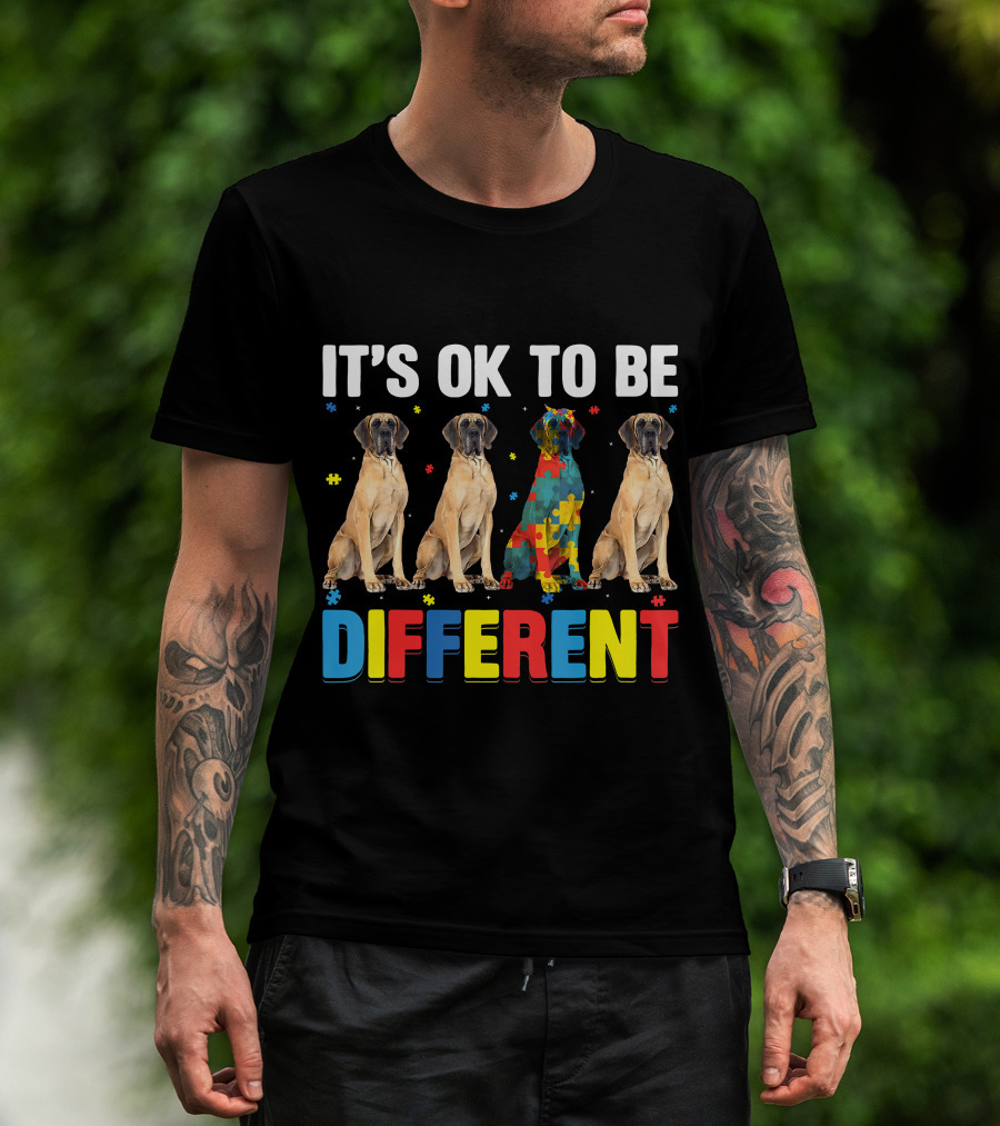 IT'S OK TO BE DIFFERENT Autism Awareness Dane Dog Dad Dog T-Shirt