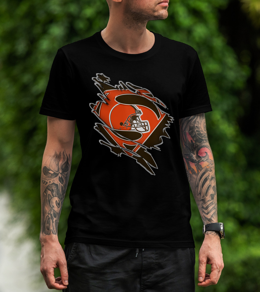 The Browns Superman Football Logo Rip T-shirt is designed for everyday wear and a consistent fit. Fabric is pre-shrunk ring-spun cotton with durable stitching. See the size chart below for exact measurements.