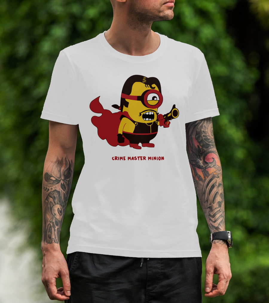 The Crime Master Minion Hero Fusion T-shirt is designed for everyday wear and a consistent fit. Fabric is pre-shrunk ring-spun cotton with durable stitching. See the size chart below for exact measurements.