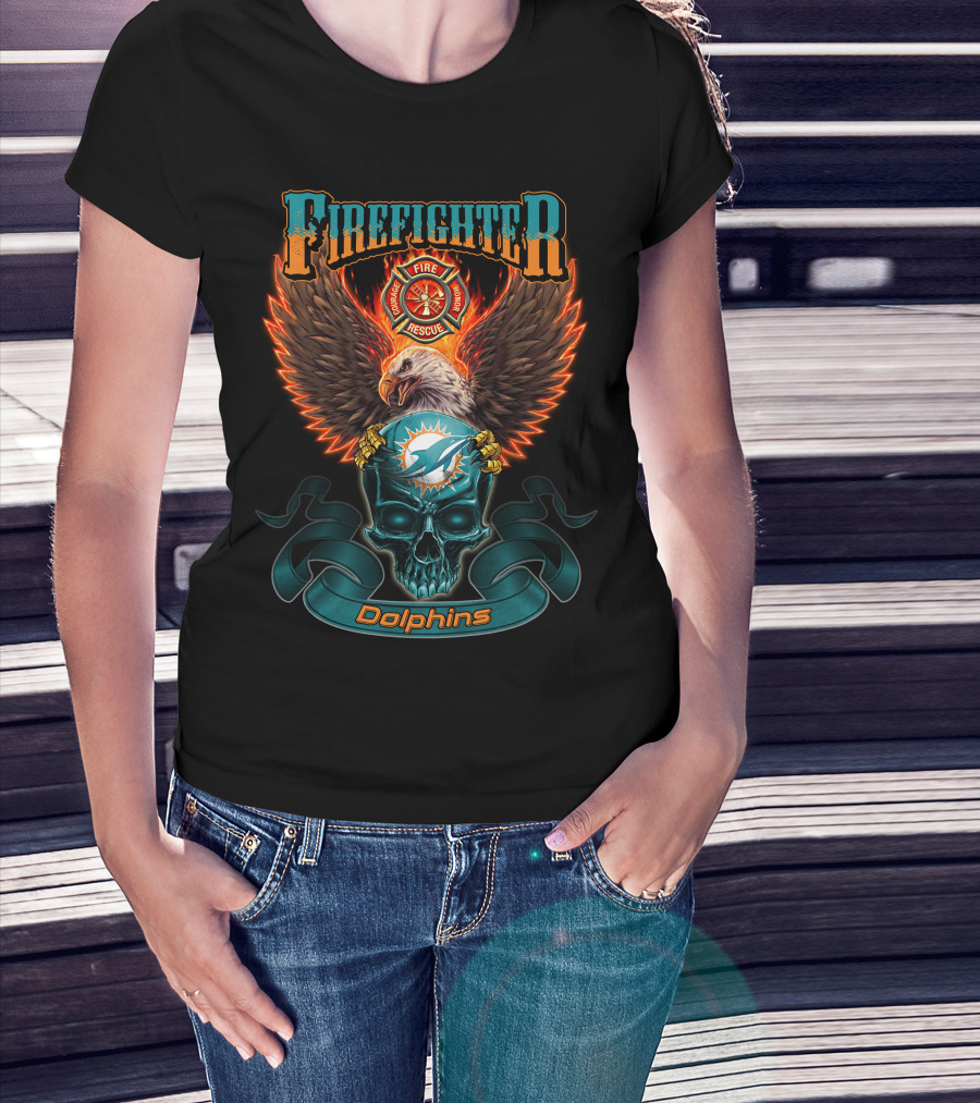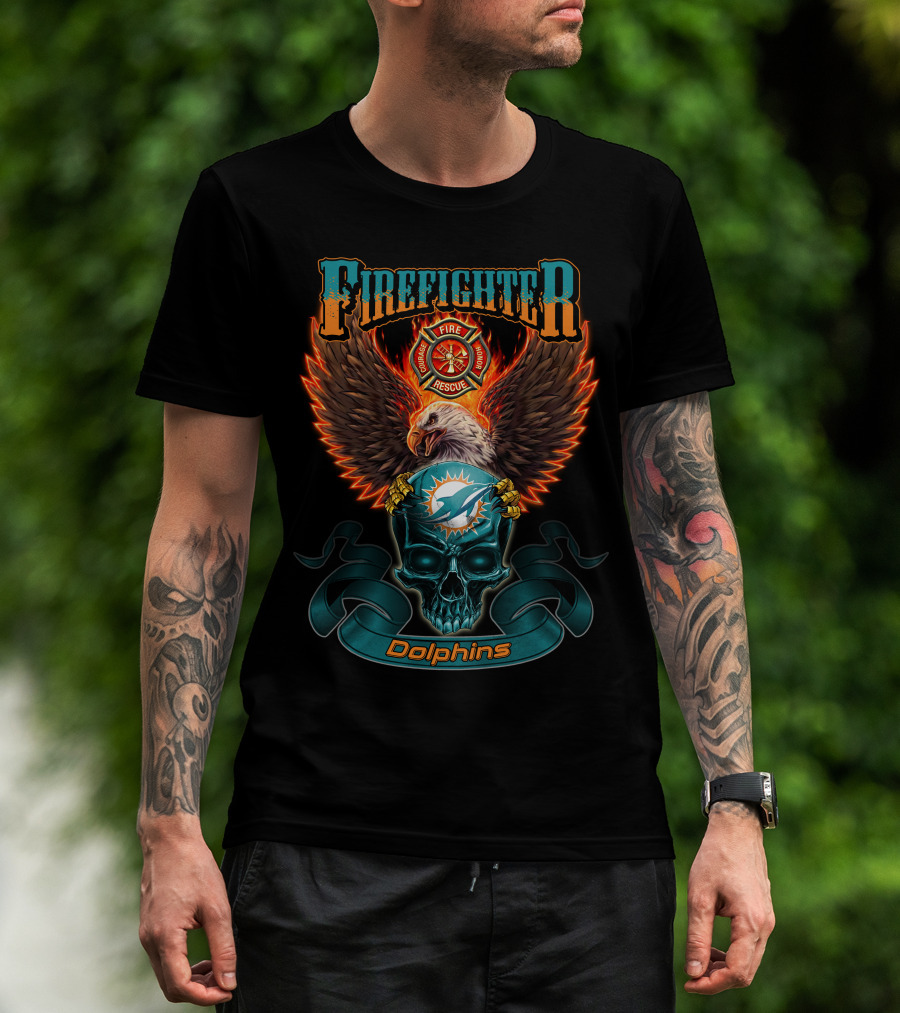 Firefighter Fire Rescue Eagle Miami Dolphins Skull T-Shirt
