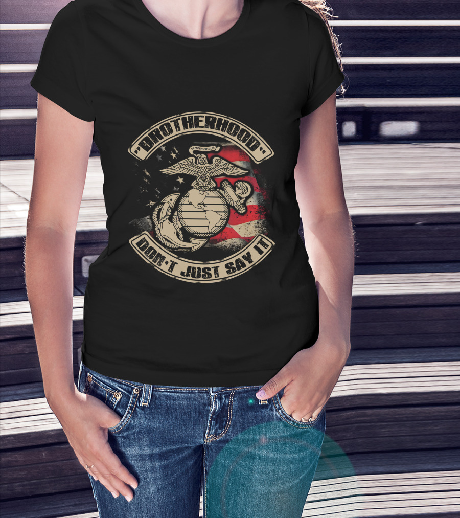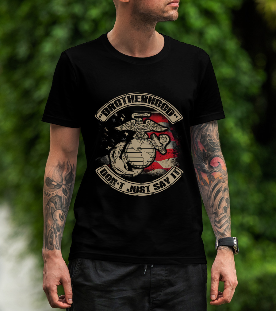 Brotherhood Don't Just Say It United States Marine Corps Semper Fidelis Eagle Globe Anchor American Flag T-Shirt