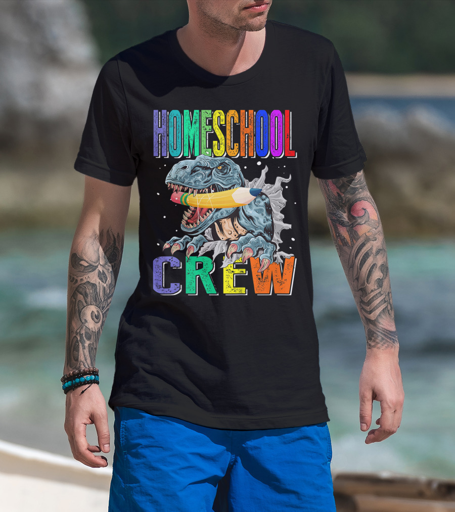 Homeschool Crew Dinosaur Funny Back To School Rainbow Colorful Pencil T-Rex T-Shirt