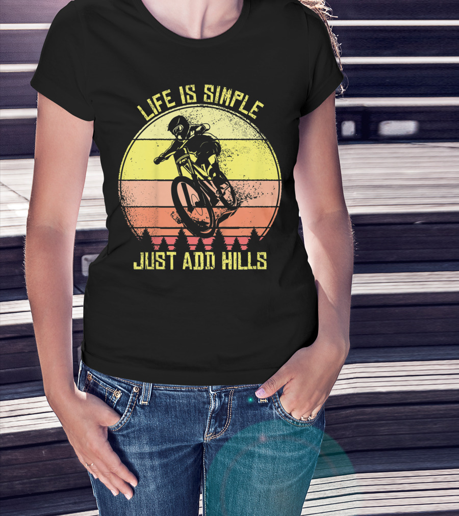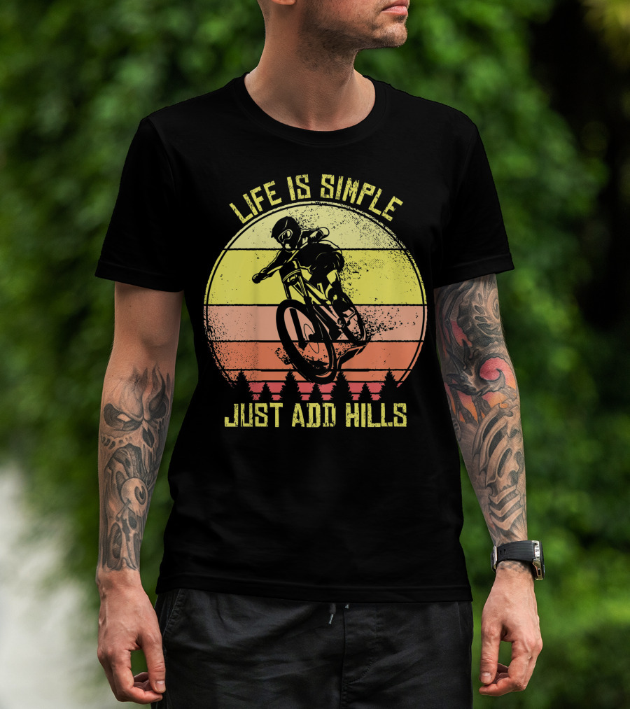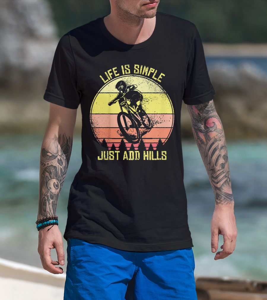 Life Is Simple Just Add Hills Offroad Mountain Bike MTB T-Shirt