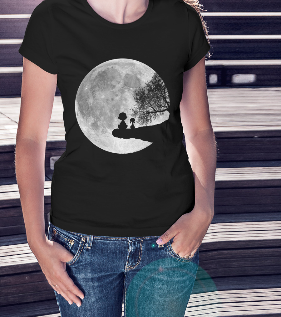 Snoopy And Charlie Moonlit Silhouette Pals On The Edge T-Shirt