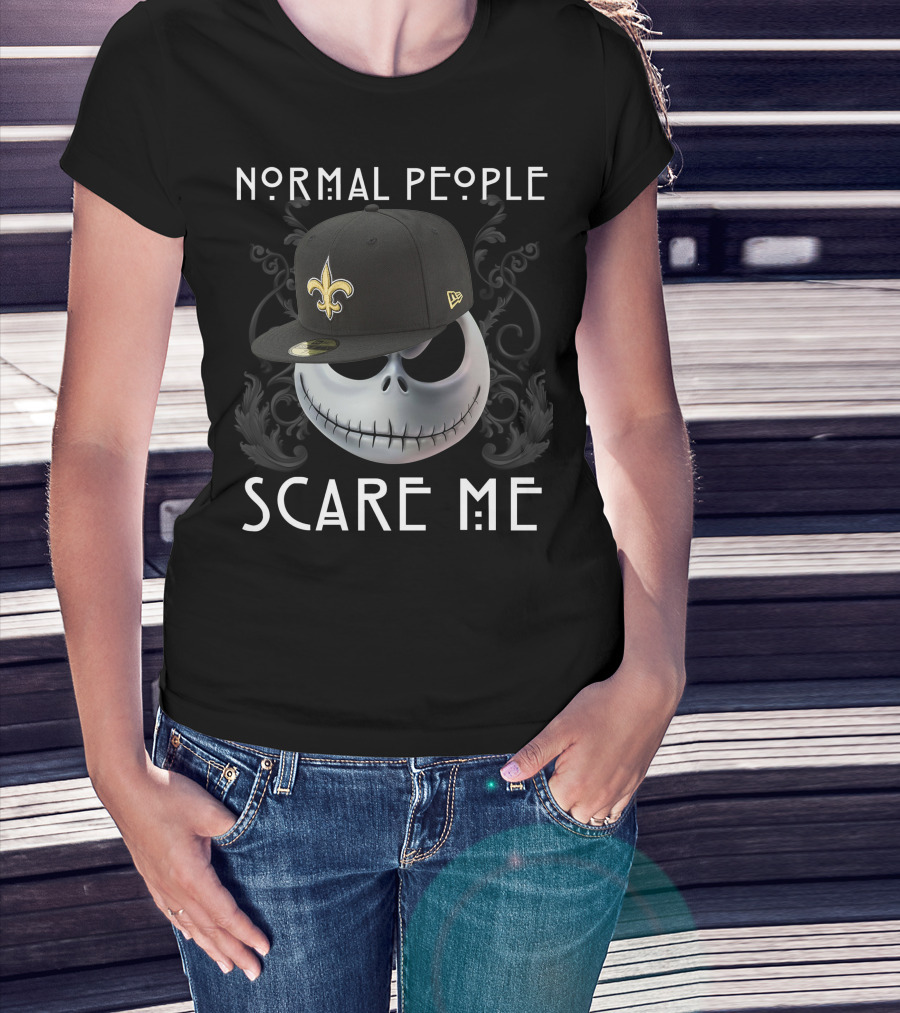 Normal People Scare Me Jack NFL Saints Hat Skull T-Shirt