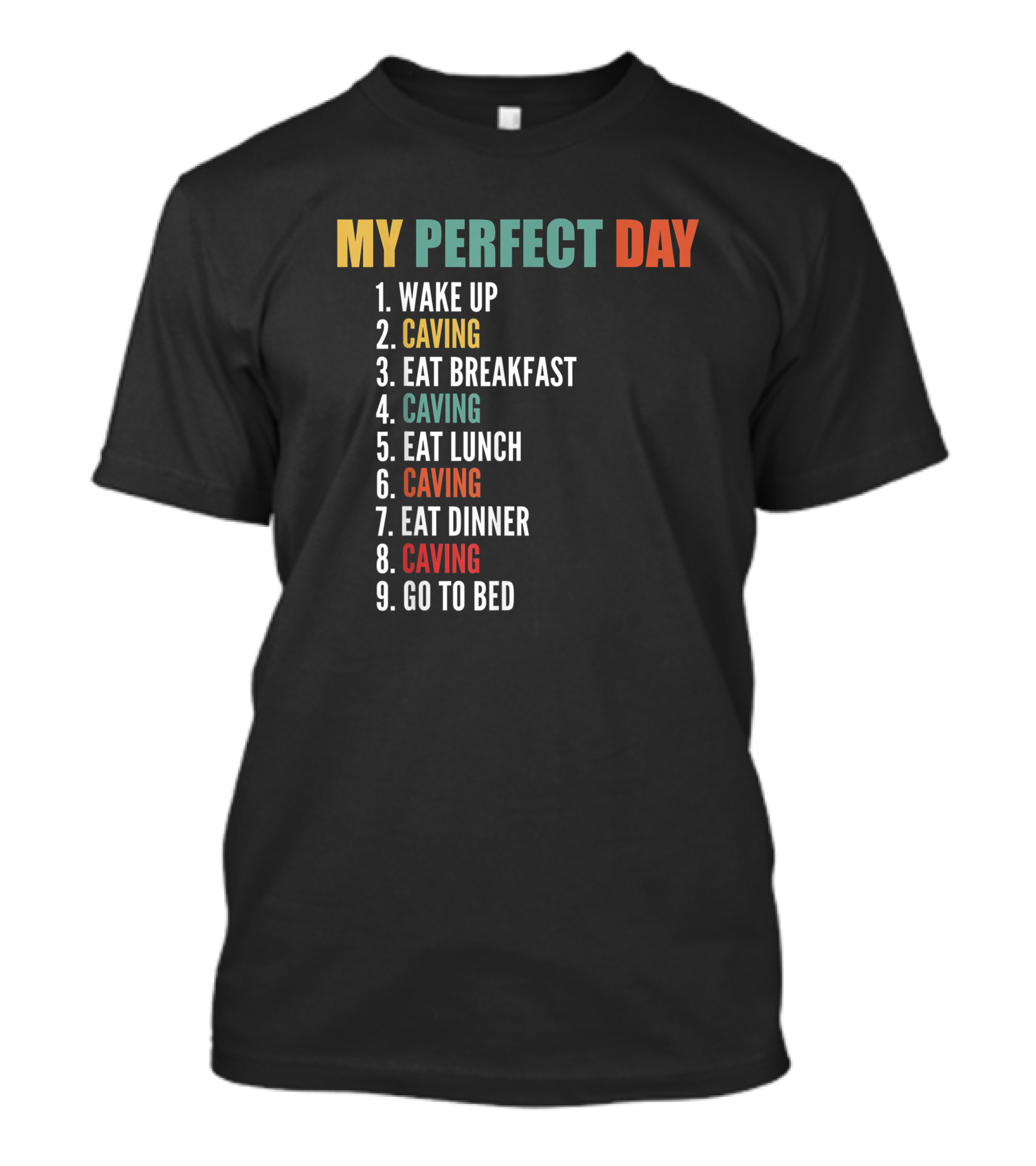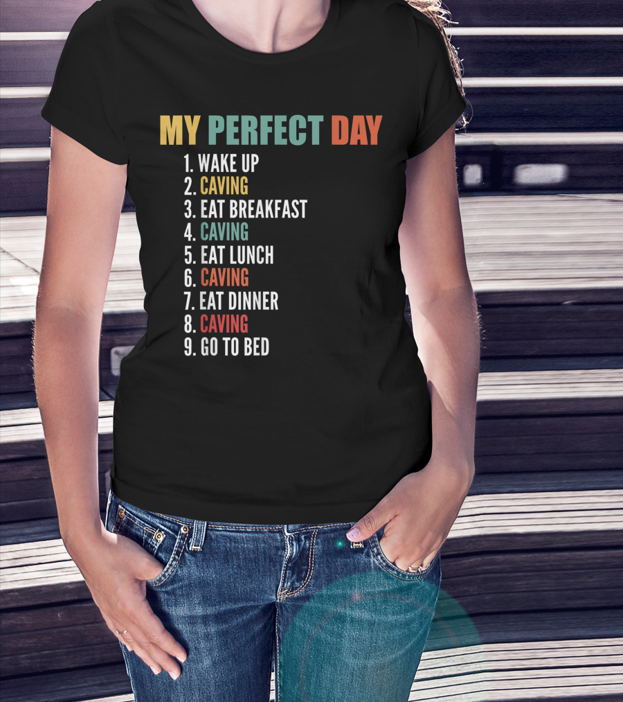 My Perfect Day Wake Up Caving Eat Breakfast Caving Eat Lunch Caving Eat Dinner Caving Go To Bed T-Shirt