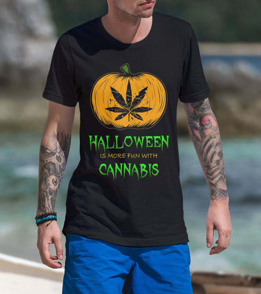 Halloween Is More Fun With Cannabis Pumpkin Leaf T-Shirt