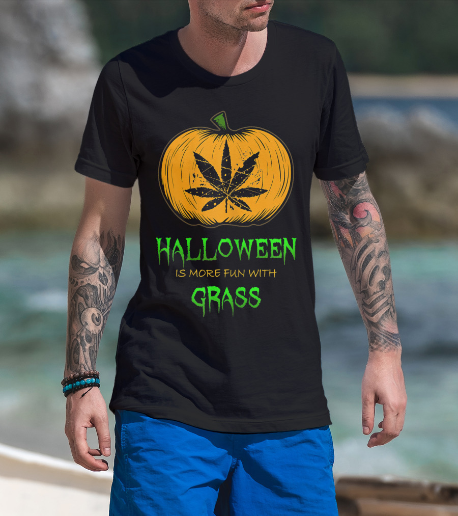 Halloween Is More Fun With Grass Pumpkin Weed Smokers T-Shirt