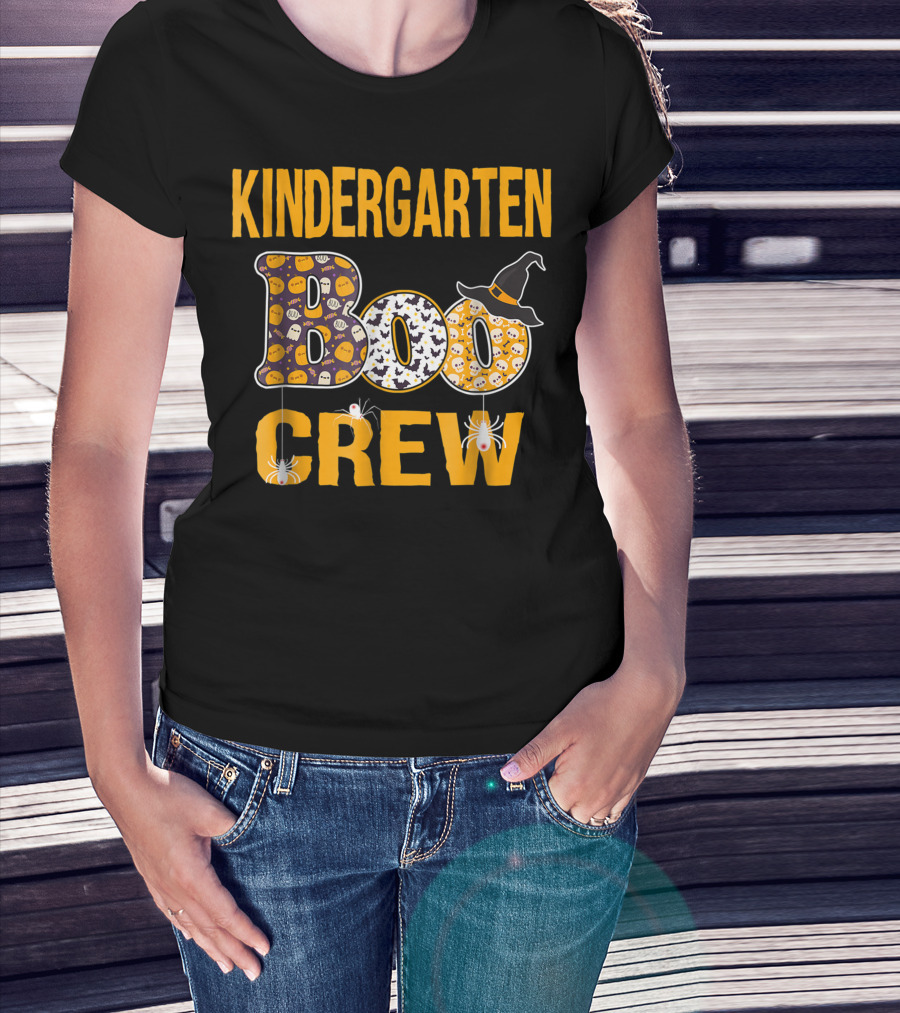 Kindergarten Boo Crew Teacher Halloween Ghosts Bats Spiders Hat T-Shirt