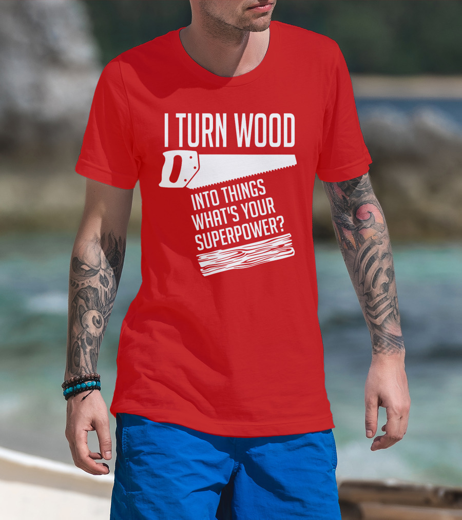 I Turn Wood Into Things What's Your Superpower Saw Woodworker T-Shirt