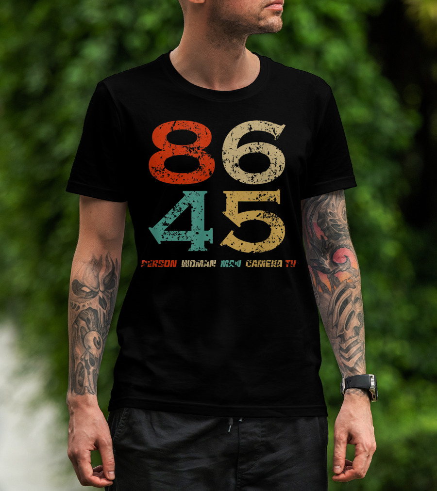 The 86 45 Person Woman Man Camera TV T-shirt is designed for everyday wear and a consistent fit. Fabric is pre-shrunk ring-spun cotton with durable stitching. See the size chart below for exact measurements.