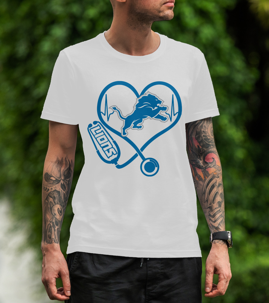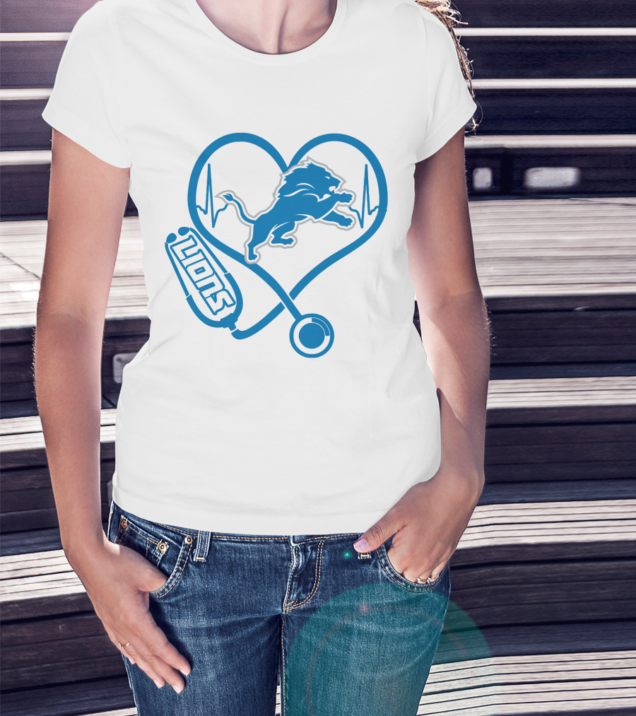 Nurse Heartbeat Stethoscope Detroit Lions T-Shirt