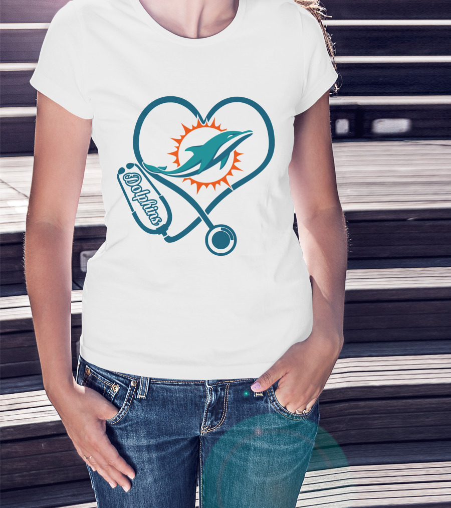 Nurse Heartbeat Miami Dolphins Stethoscope T-Shirt