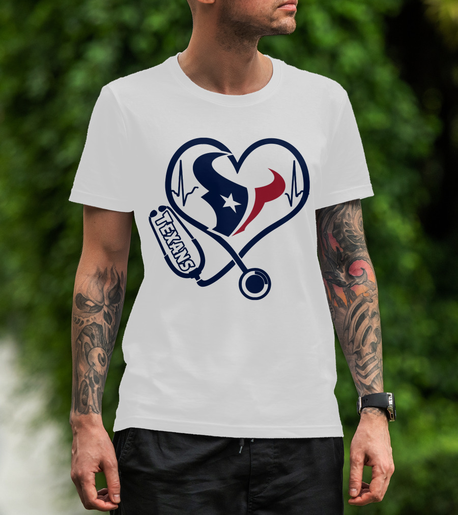 Nurse Houston Texans Heartbeat Stethoscope T-Shirt