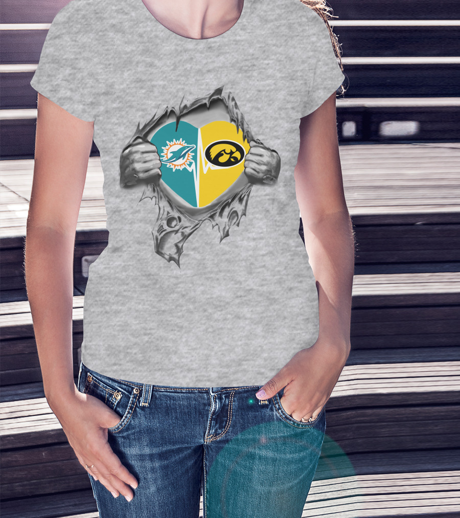 Miami Dolphins Hawkeyes Heart Logo Fusion T-Shirt