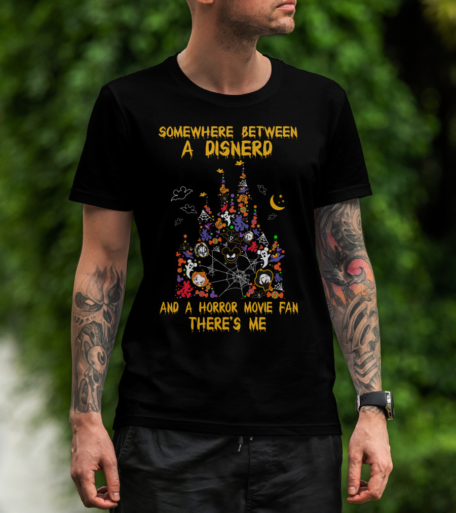 Somewhere Between A Disnerd And A Horror Movie Fan There's Me T-Shirt