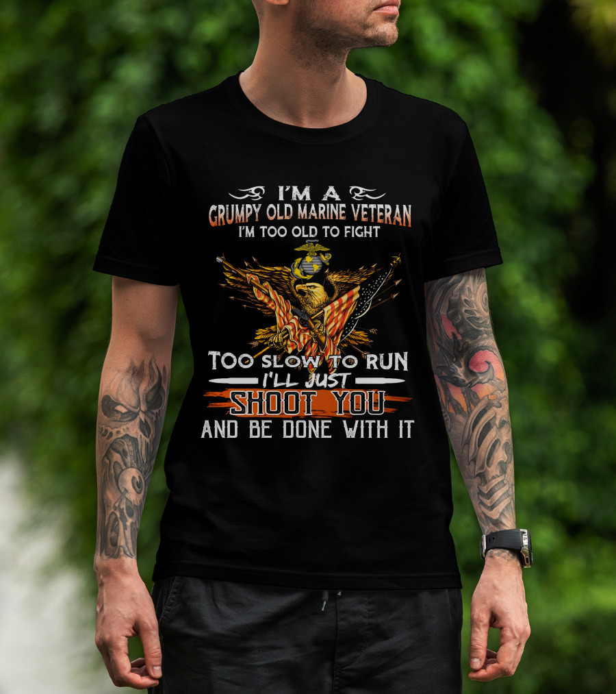 I'm A Grumpy Old Marine Veteran Too Old To Fight Too Slow To Run I'll Just Shoot You And Be Done With It T-Shirt