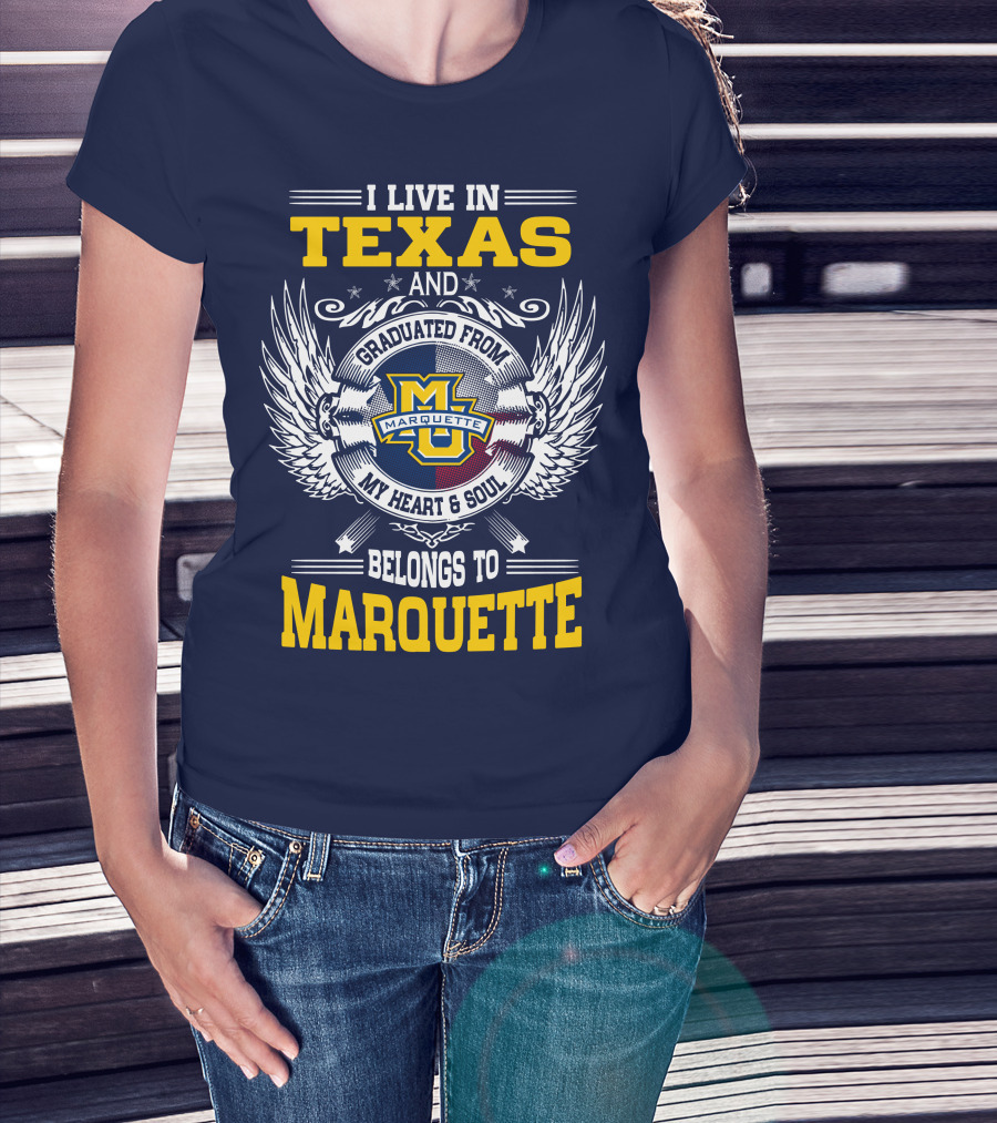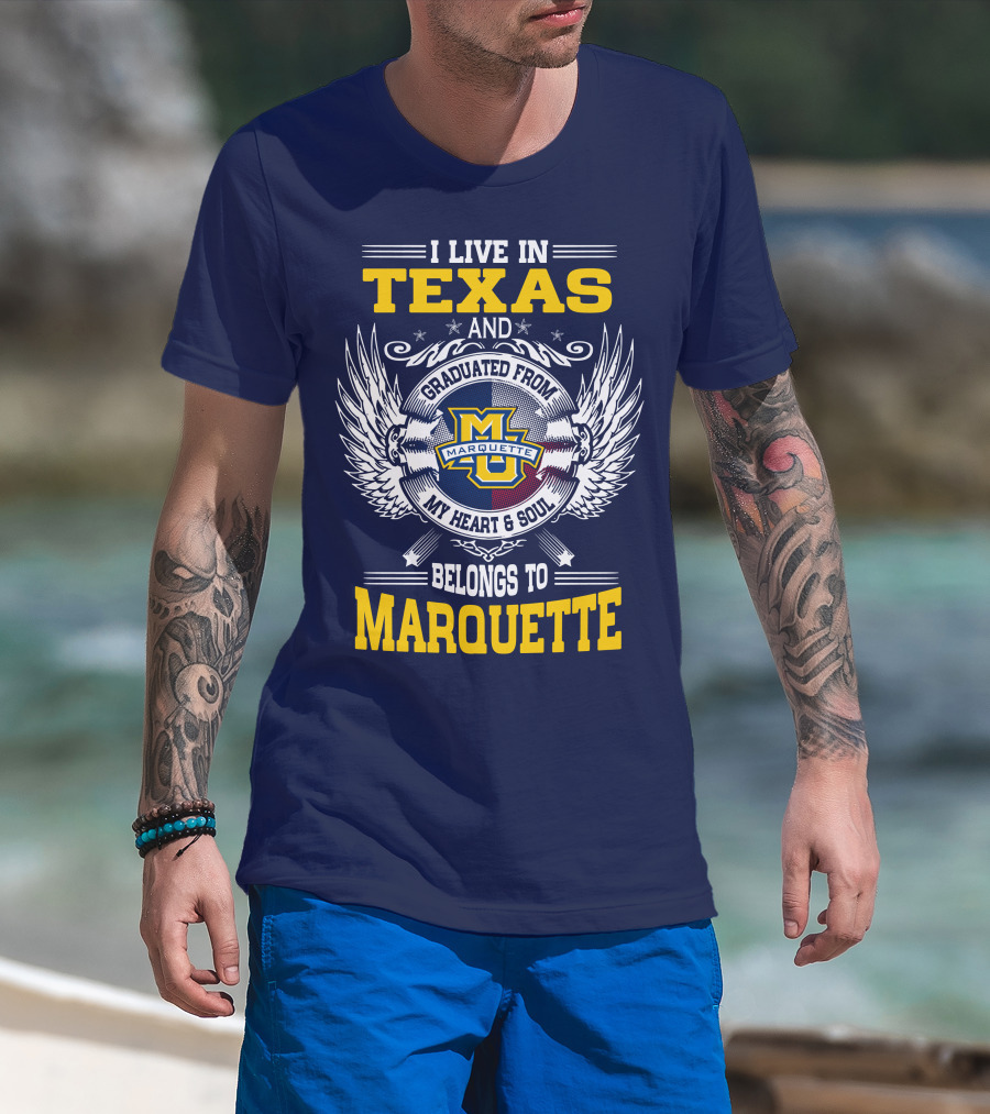 I Live In Texas And Graduated From Marquette My Heart And Soul Belongs To Marquette T-Shirt