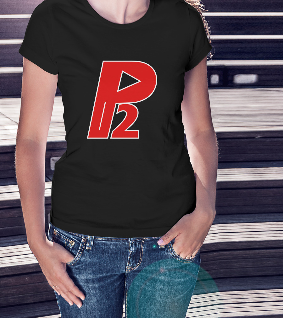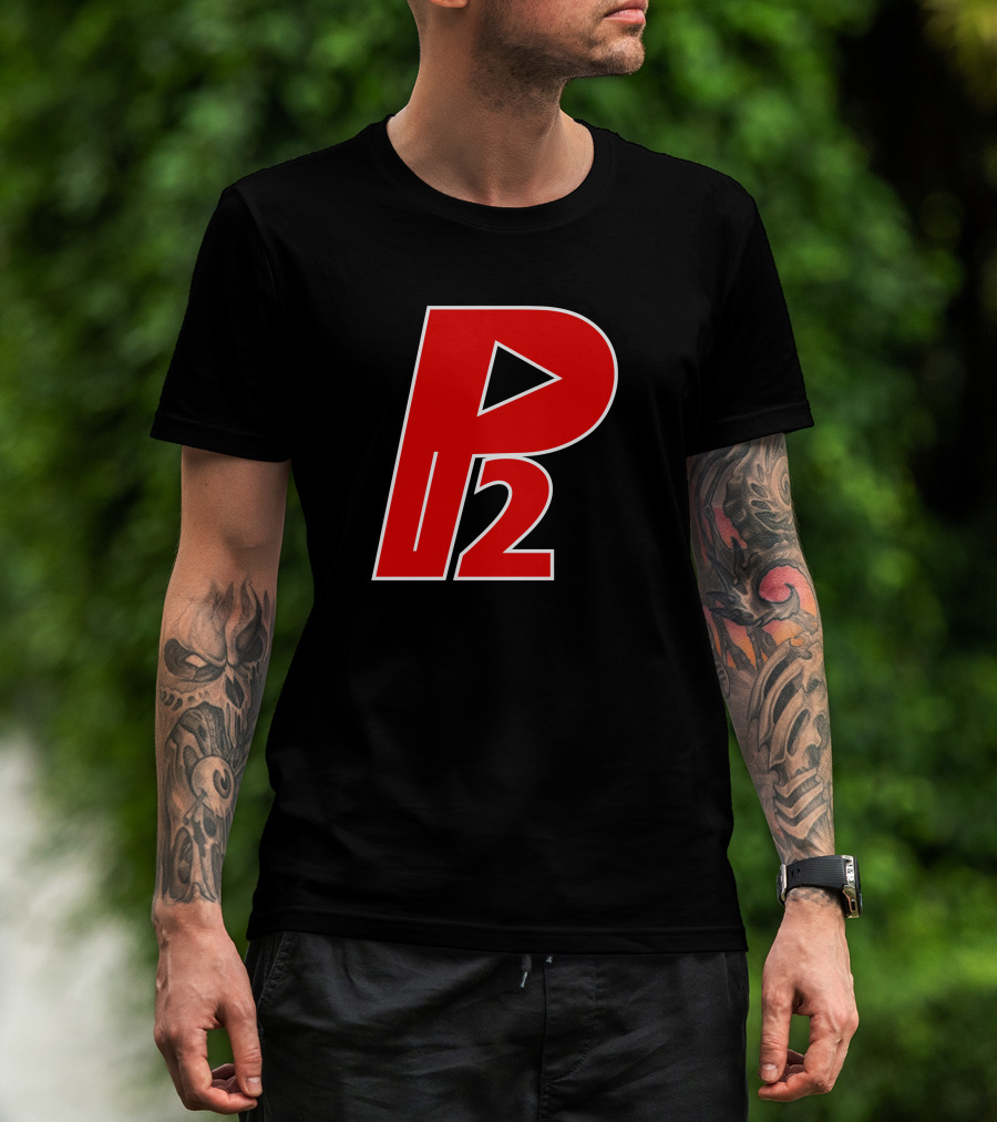 P2isthename Merch Bold Red P2 Logo With Play T-Shirt