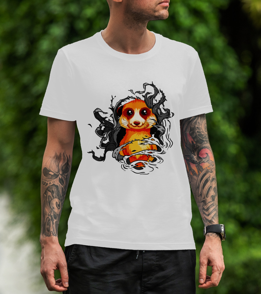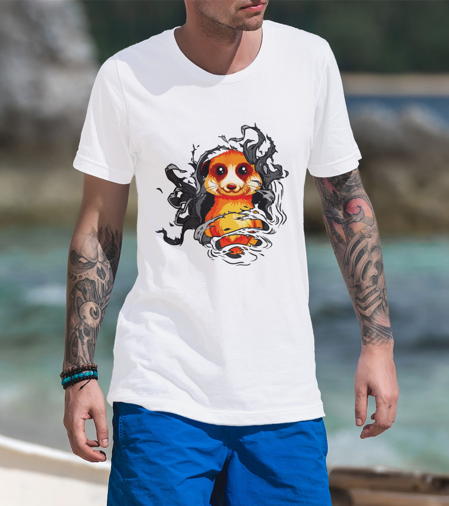 Meerkat Vivid Orange Burst Black Swirls T-Shirt