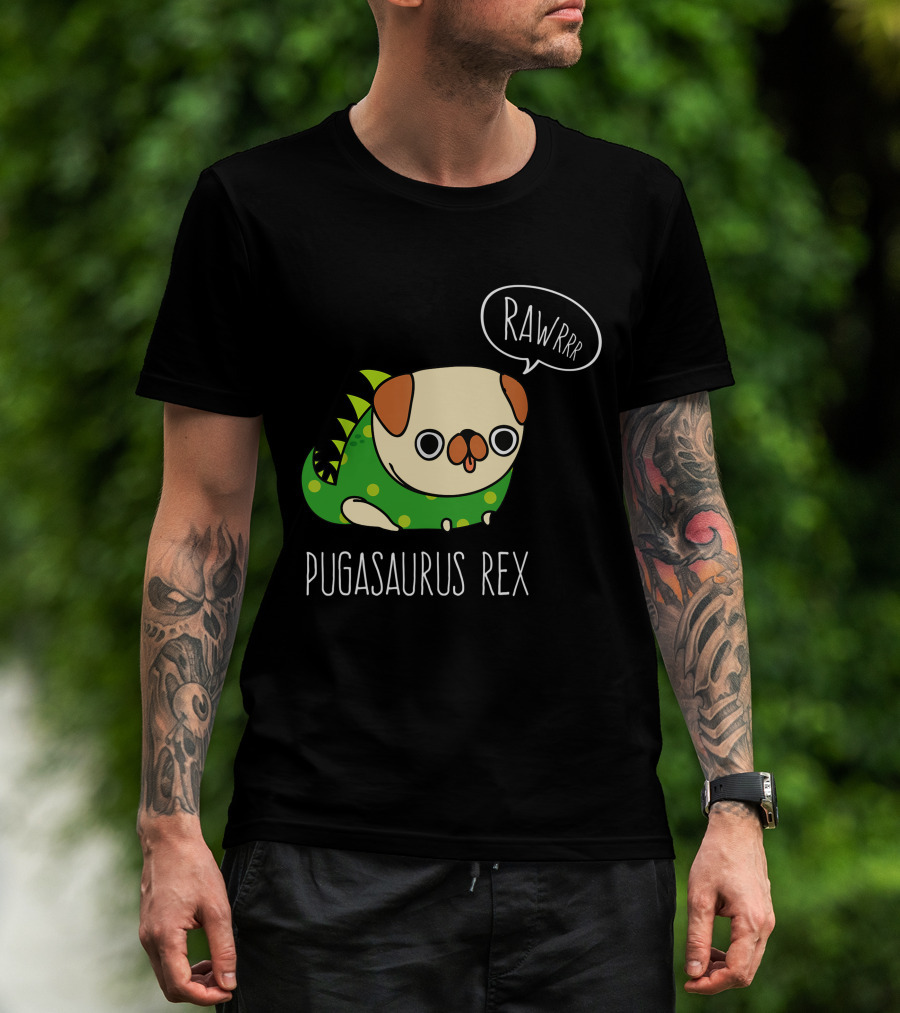 The Pugasaurus Rex Pug Dog Halloween Rawrrr T-shirt is designed for everyday wear and a consistent fit. Fabric is pre-shrunk ring-spun cotton with durable stitching. See the size chart below for exact measurements.