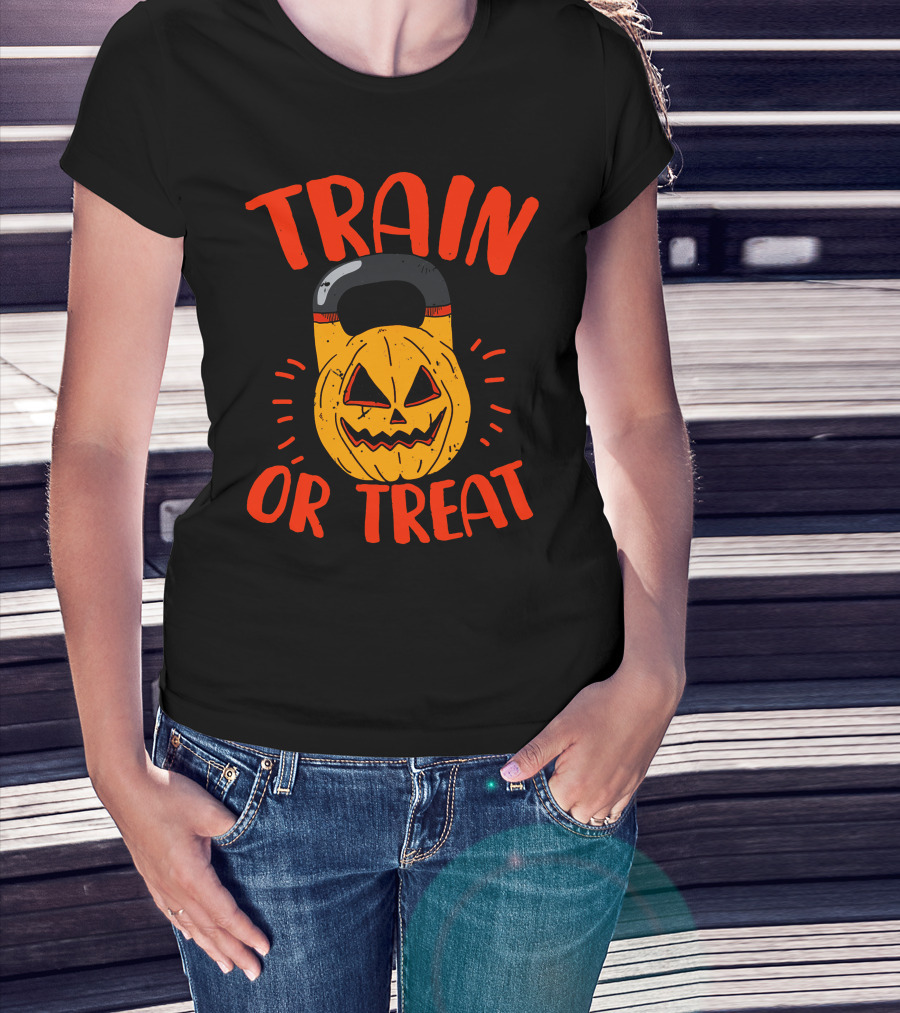 Train Or Treat Pumpkin Kettlebell T-Shirt
