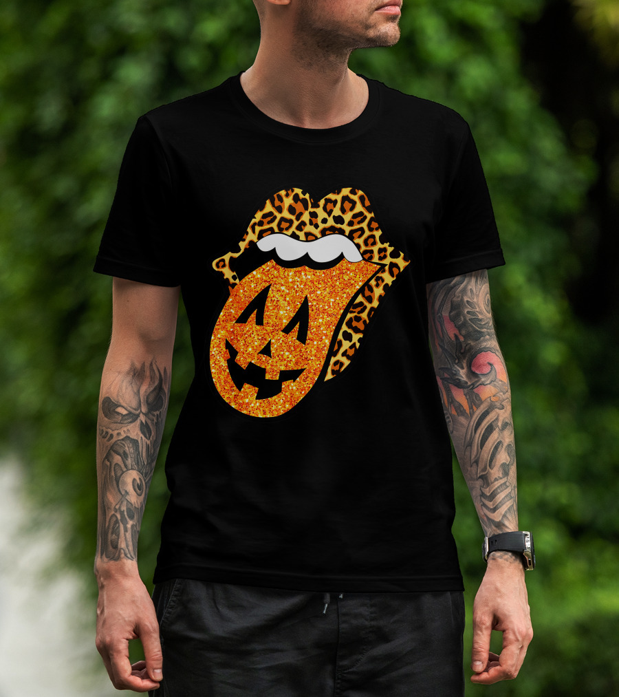 Leopard Lips Pumpkin Tongue Halloween Jack-O'-Lantern Face T-Shirt