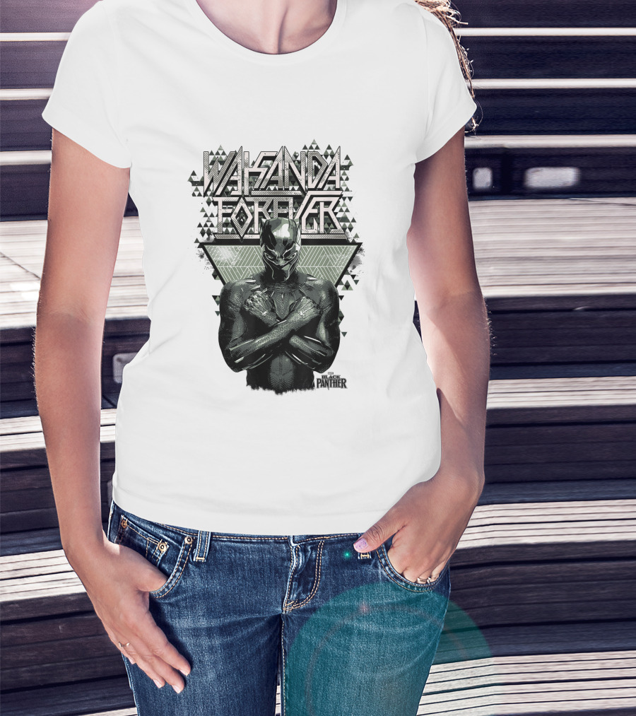 Wakanda Forever Black Panther Marvel Prism Patterned T-Shirt
