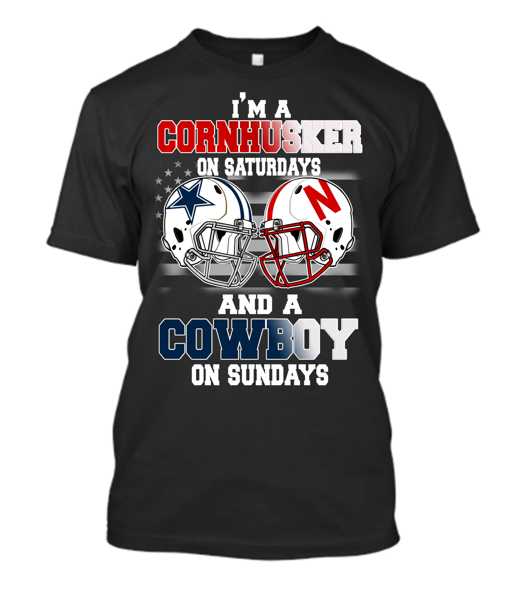 The I'm a Cornhusker on Saturdays and a Cowboy on Sundays T-shirt is designed for everyday wear and a consistent fit. Fabric is pre-shrunk ring-spun cotton with durable stitching. See the size chart below for exact measurements.