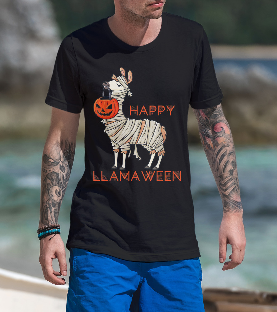 How much will this Halloween Llama Mummy Holding Pumpkin Happy Llamaween shirt shrink?