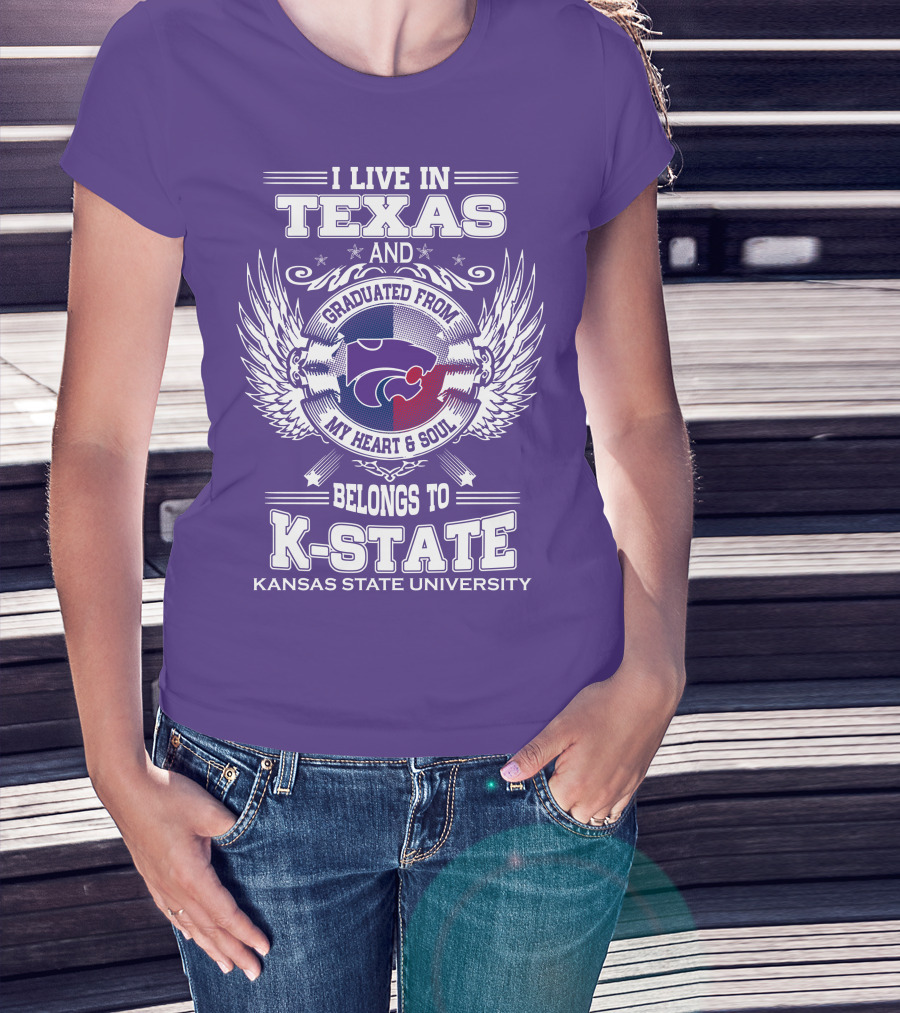 I Live In Texas And Graduated From My Heart And Soul Belongs To Kansas State University K-State T-Shirt