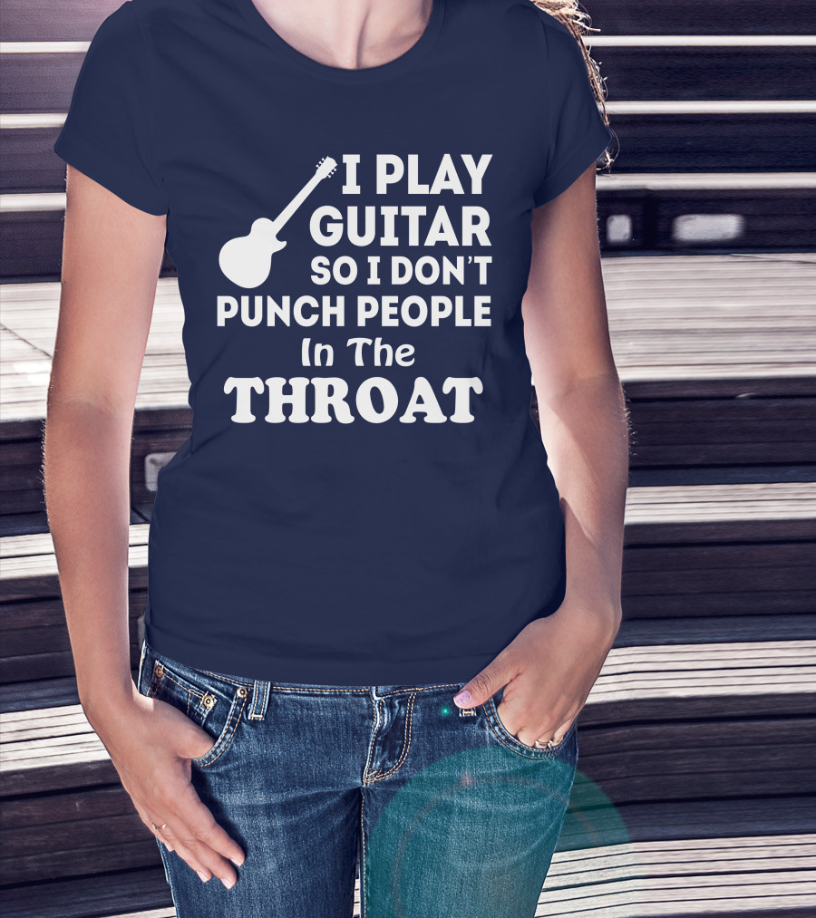 The I Play Guitar So I Don't Punch People in the Throat T-shirt is designed for everyday wear and a consistent fit. Fabric is pre-shrunk ring-spun cotton with durable stitching. See the size chart below for exact measurements.