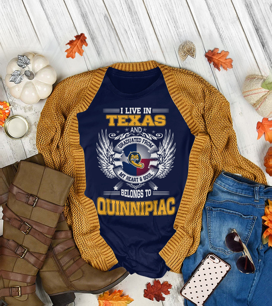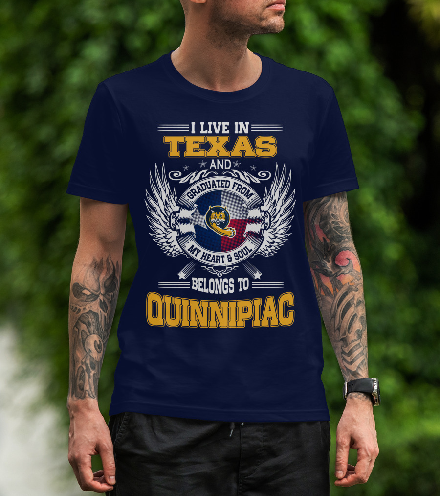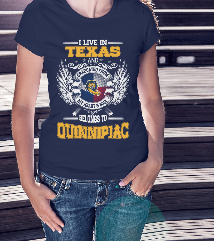 I Live In Texas And Graduated From Quinnipiac My Heart And Soul T-Shirt