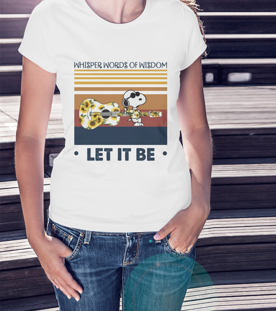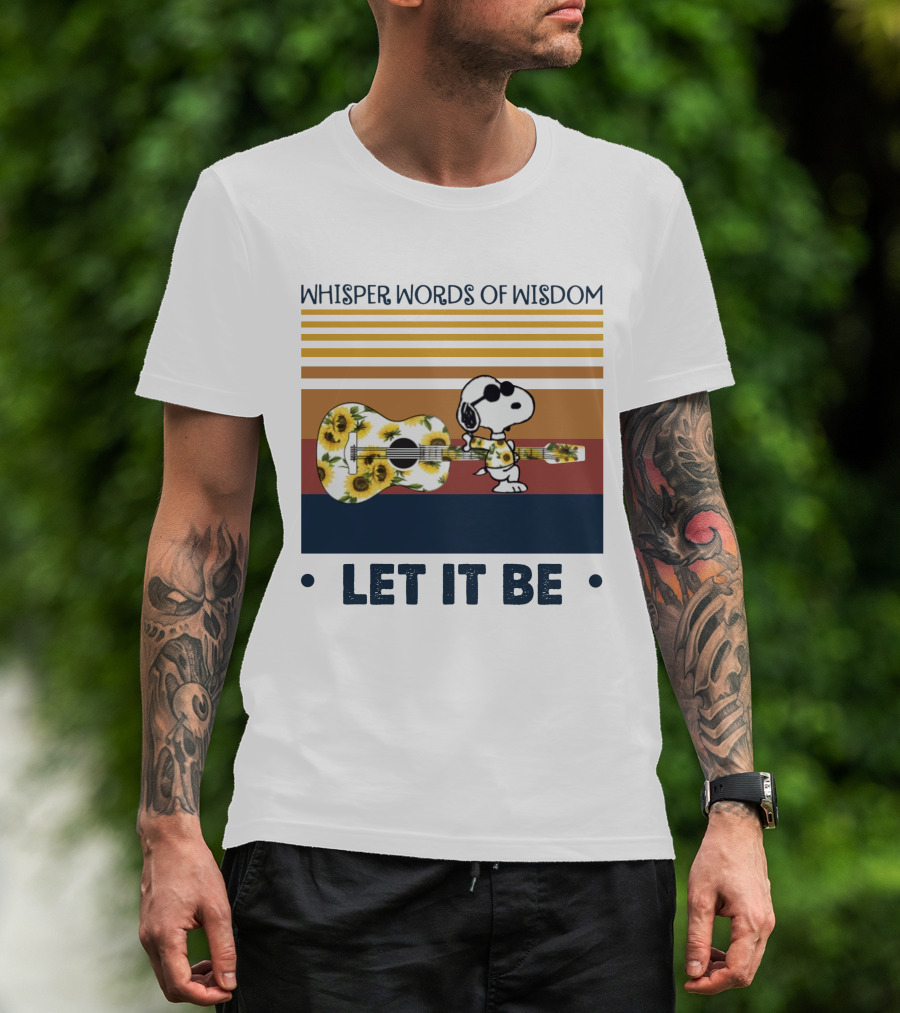 Snoopy Whisper Words Of Wisdom Let It Be Guitar Sunflowers T-Shirt