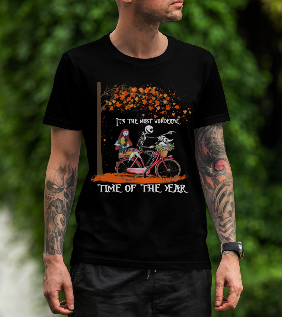Jack And Sally It's The Most Wonderful Time Of The Year Bicycle Ride Under Autumn Tree T-Shirt