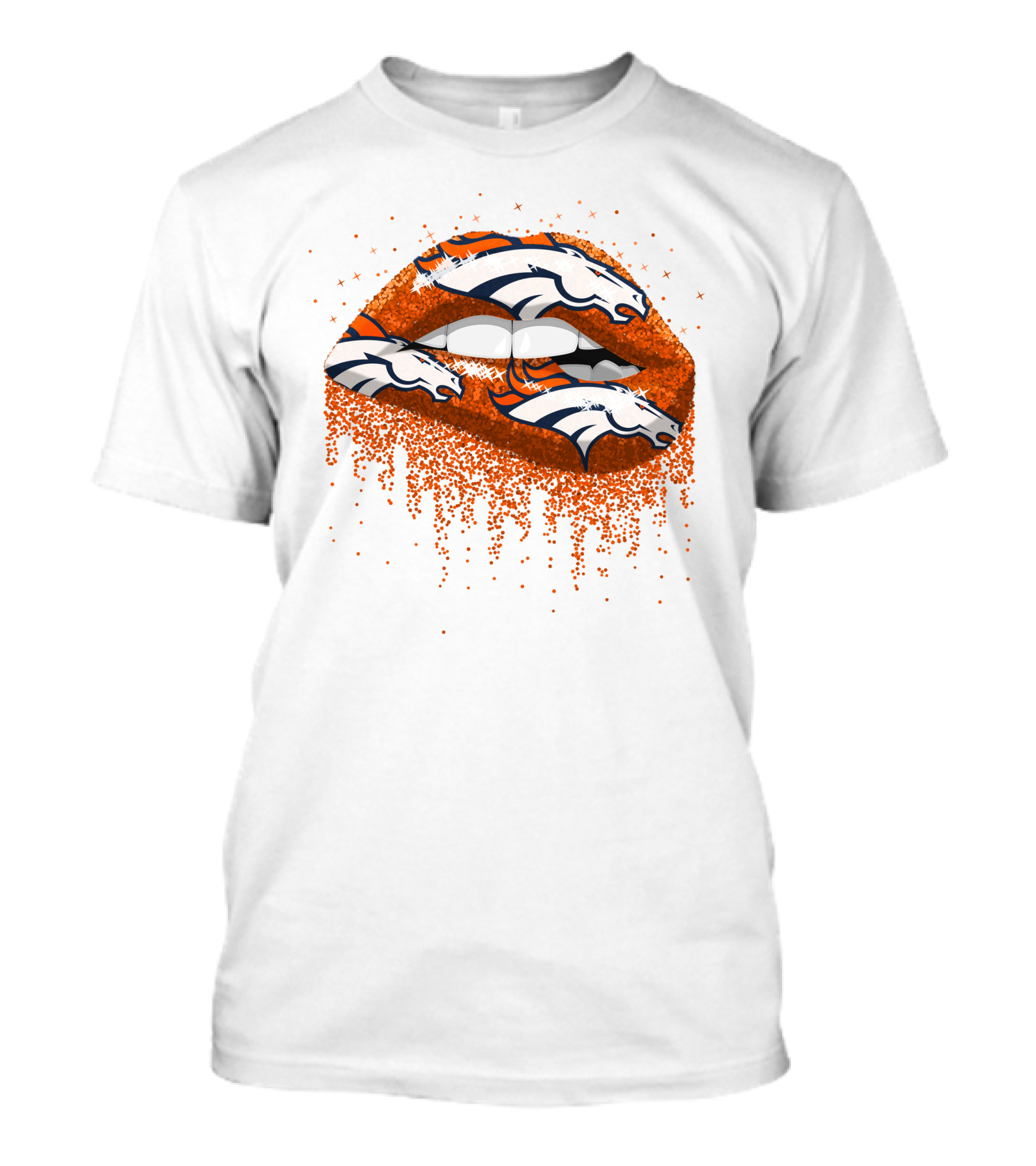 The Denver Broncos Glitter Lips T-shirt is designed for everyday wear and a consistent fit. Fabric is pre-shrunk ring-spun cotton with durable stitching. See the size chart below for exact measurements.