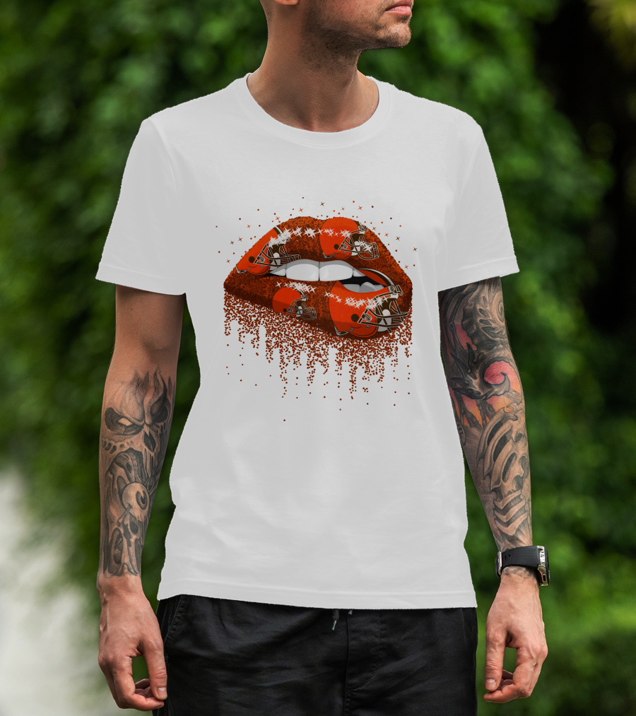 Cleveland Browns Helmet Sparkle Lips T-Shirt