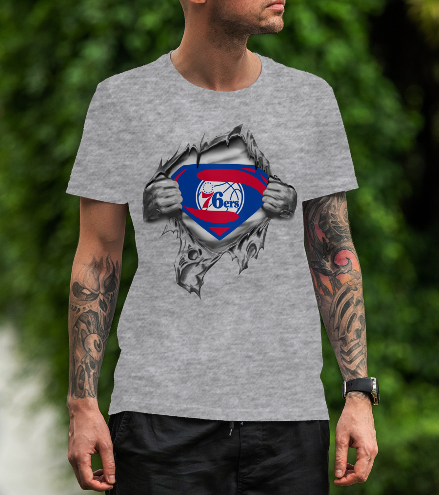 Philadelphia 76ers Superman Logo Rip Basketball T-Shirt
