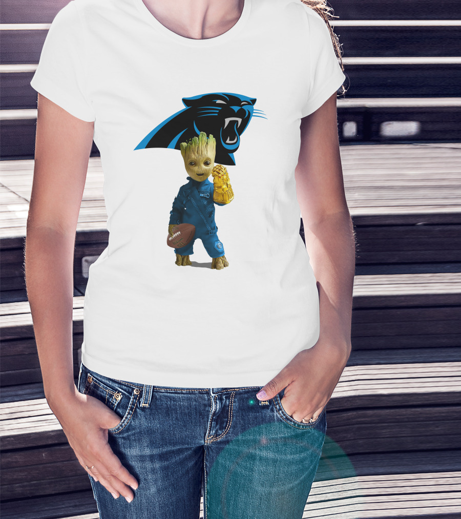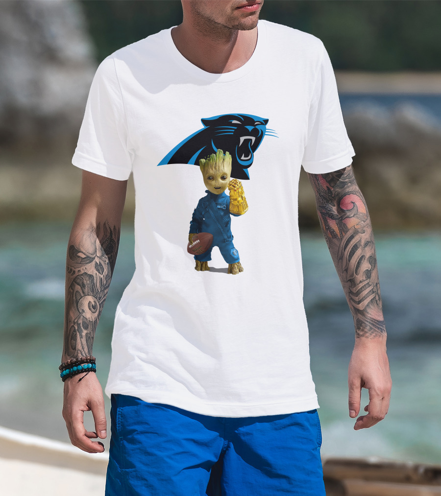 Carolina Panthers Groot Football Infinity Gauntlet Crossover T-Shirt