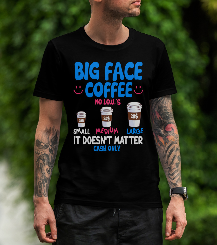 Big Face Coffee 20$ No I.O.U.s Small Medium Large Cash Only It Doesn't Matter T-Shirt