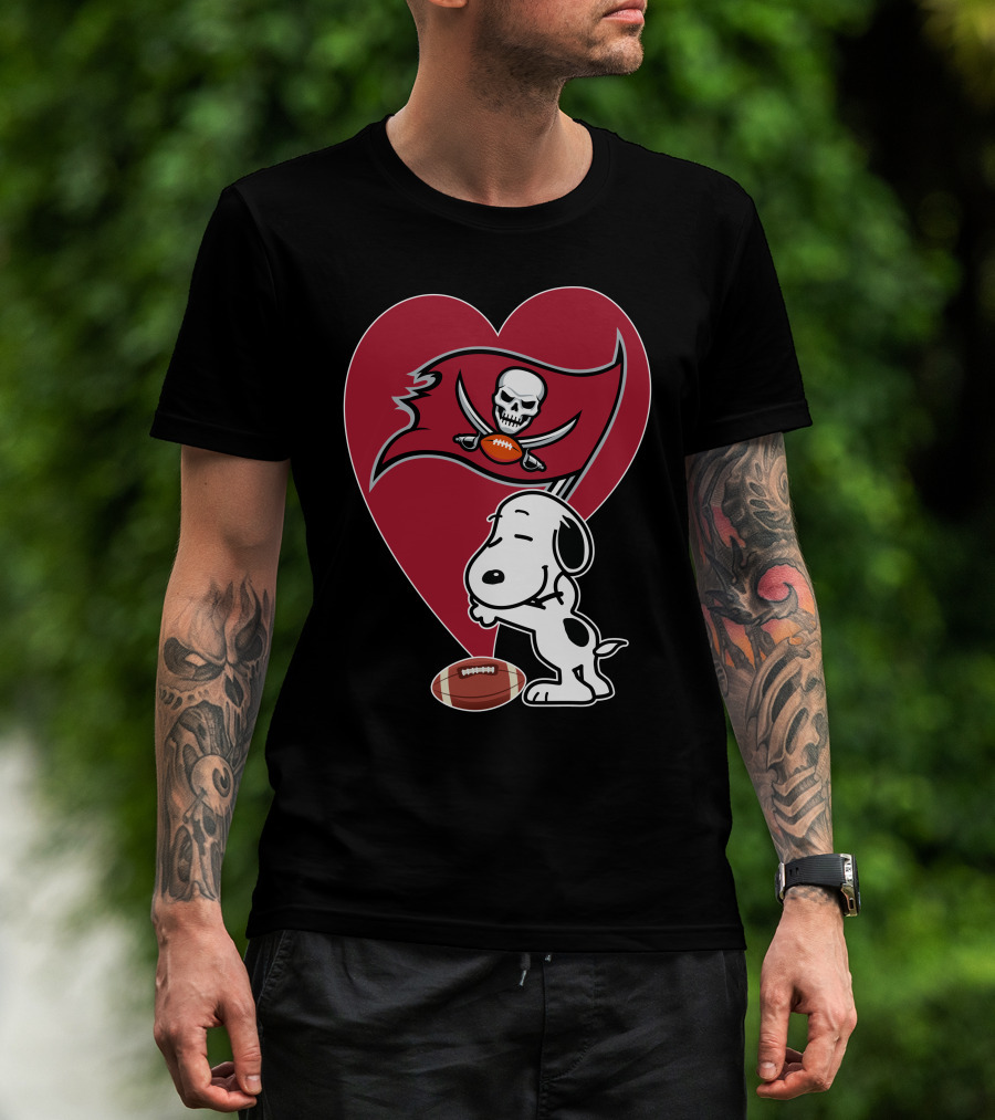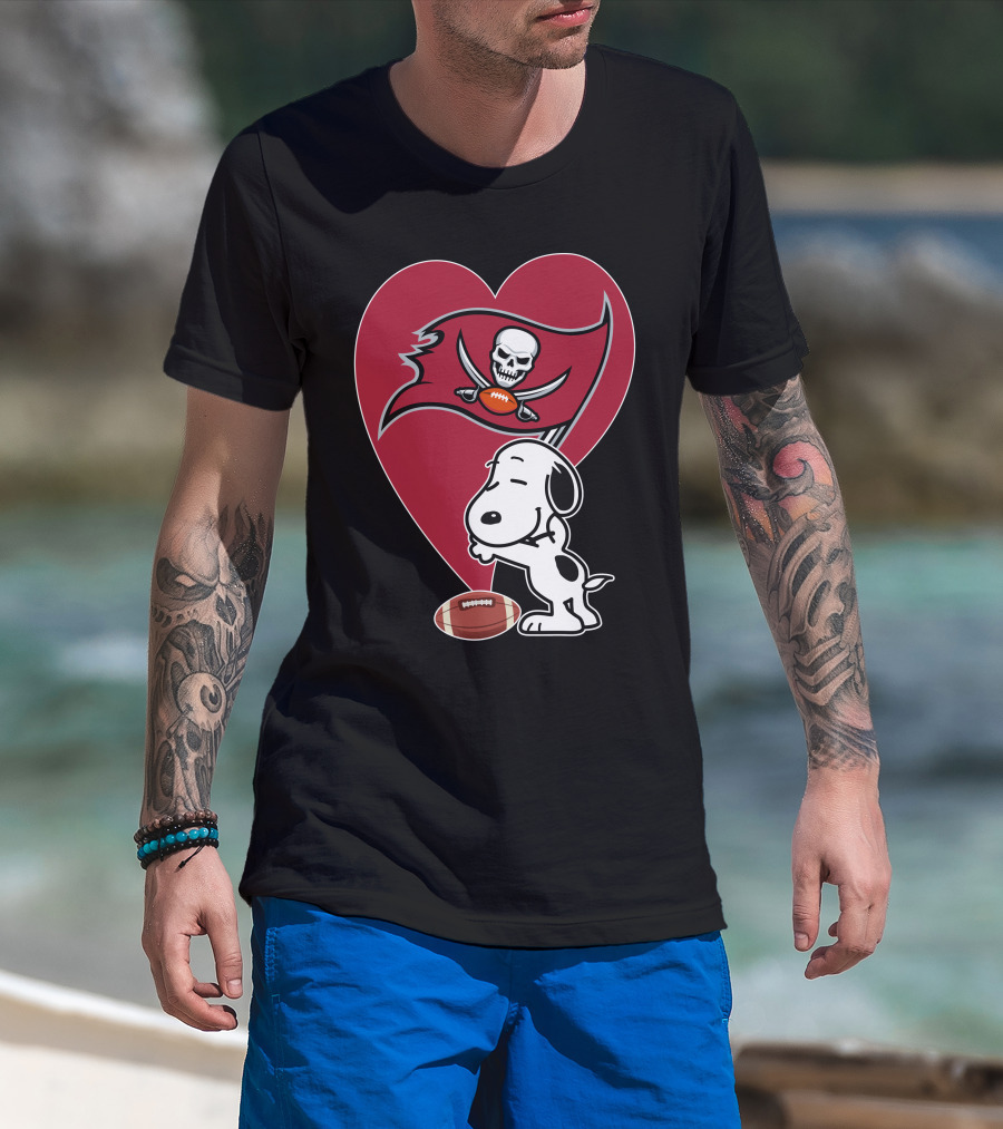 Tampa Bay Buccaneers Snoopy Heart Hug Football T-Shirt