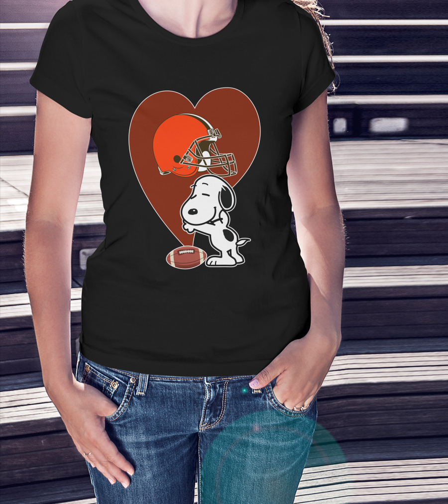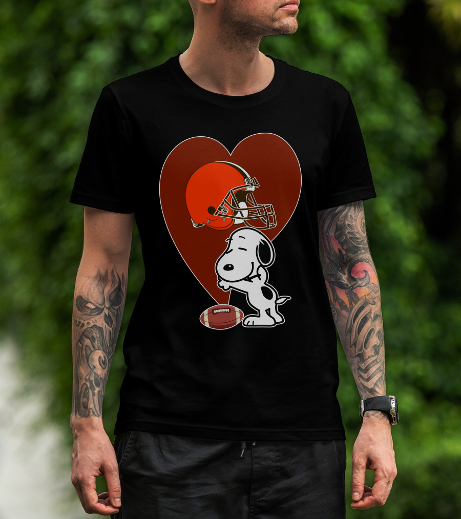 Cleveland Browns Snoopy Heart Football Helmet Hug T-Shirt