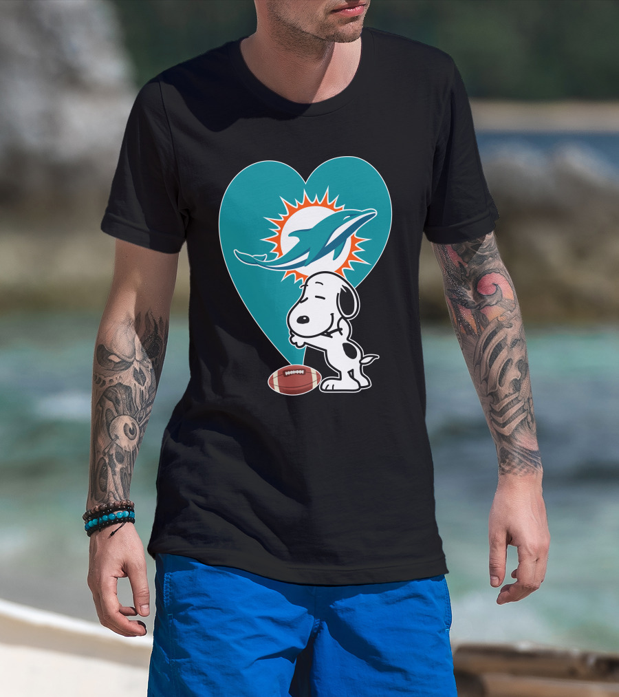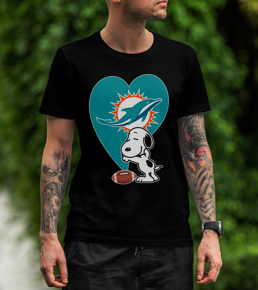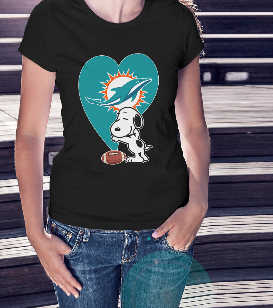 Miami Dolphins Snoopy Heart Hug Football T-Shirt